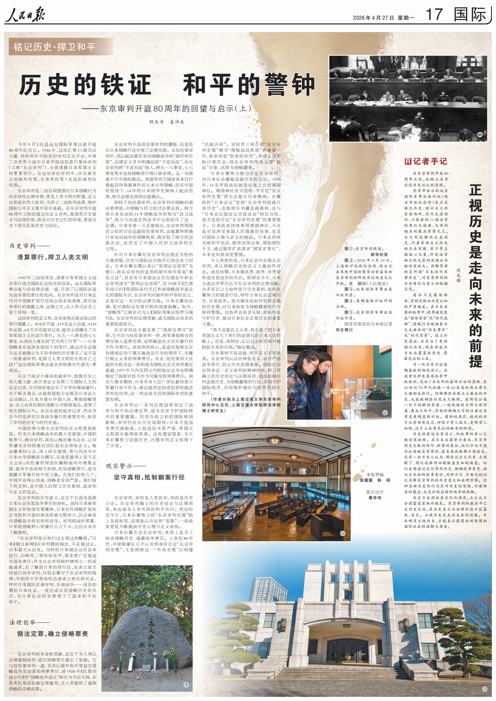 令人欣慰的是,日本社会中正视东京审判、承认侵略历史的正义力量始终存在。战后初期,日本媒体界、政界、学界曾形成反思战争的共识。即便在今天,日本主流法学界仍认可东京审判的法理贡献,众多有识之士始终坚守历史真相,批判右翼势力的错误行径,呼吁日本社会正视历史、反省战争。部分媒体也始终坚持正确的历史观,对日本政客为侵略翻案的行为保持警惕。这些声音虽受压制,却始终是守护历史、推动日本社会正视历史的重要力量。